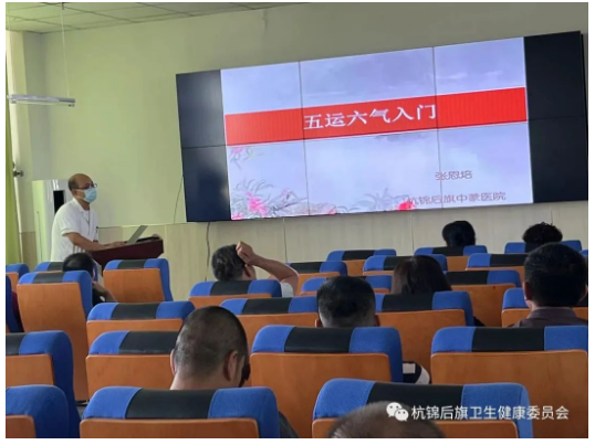 中蒙医院脑病科主任张恩培进行《五运六气入门》培训,主要对中医五运六气起源和基本概念、中医五运六气在临床各科的应用,常用经方、运气方解析、膏方制作和运气针法临床应用等内容进行深入浅出的讲解。
