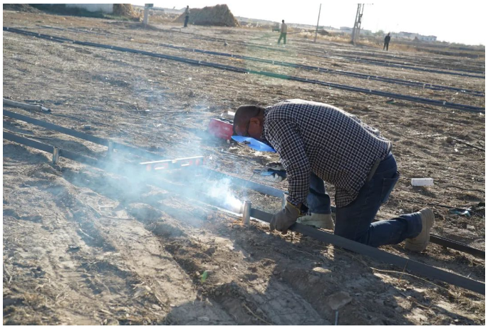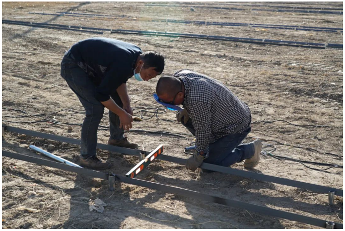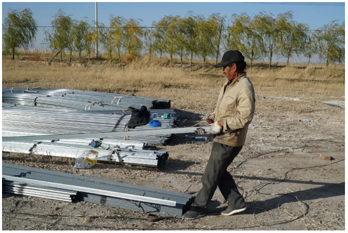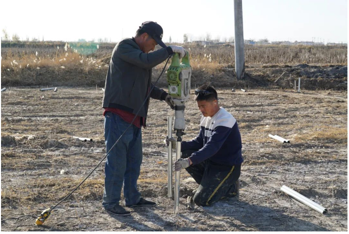 我们从9月份开始进行菌棚建设筹备工作,10月底购进材料开始建棚,今天开始打桩、安装地梁,其中6栋大棚预计一个星期就可以把外部结构建好,明年四月份我们开始投产,放菌棒。