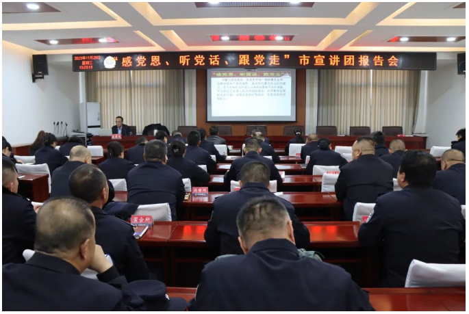 为持续深入学习领会习近平总书记考察内蒙古的重要指示精神,扎实推动学习贯彻习近平新时代中国特色社会主义思想主题教育走深走实,引导全局民辅警以强烈的感恩之心和奋进之志抓好《国务院关于推动内蒙古高质量发展奋力书写中国式现代化新篇章的意见》的贯彻落实,按照旗委宣传部的安排部署,11月29日下午,“听党话、感党恩、跟党走”巴彦淖尔宣讲团成员、河套学院马克思主义学院党总支副书记吴爱民走进杭锦后旗公安局开展“听党话、感党恩、跟党走”主题宣讲活动。旗委宣传部理论和宣传教育室科长王光辉到会指导。政府副旗长、旗公安局党委书记、局长崔晶,旗公安局党委副书记、政委张剑及其他在家党委班子成员、各部门负责人及民辅警代表聆听宣讲。旗公安局党委委员、政工办主任陈伍龙主持宣讲会。