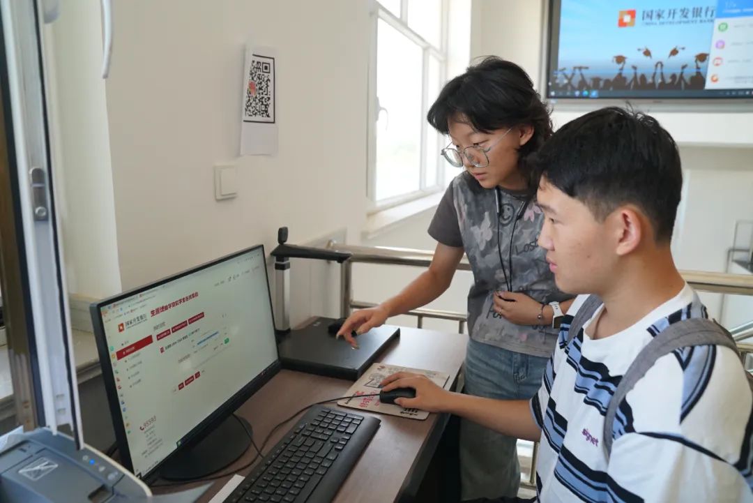 记者来到杭锦后旗学生资助中心,工作人员正在耐心帮助前来办理生源地信用助学贷款的学生和家长,在工作人员的引导下,提交身份助学证件、录入身份信息、填写申请表……学生宿博文按步骤申请和办理助学贷款。