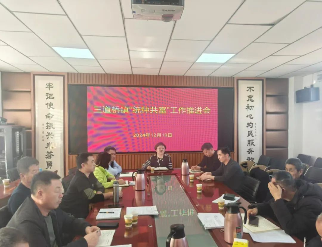 12 月 19 日,三道桥镇召开“统种共富”工作推进会,会议由镇党委书记闫乐主持,镇全体包村领导,各村支部书记参加会议。