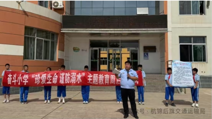 为切实增强青少年防溺水安全意识,有效预防和减少溺水事故发生,杭锦后旗交通运输综合行政执法大队积极践行社会责任,于7月2日走进奋斗小学,通过全校师生集中宣讲与班级针对性宣教相结合的形式,开展暑期防溺水安全宣传活动,为师生们送上一份“安全锦囊”。