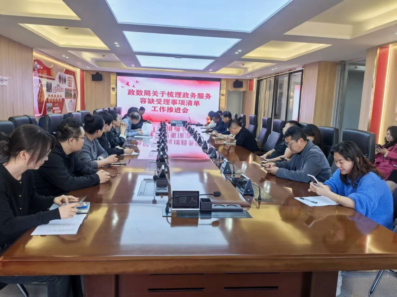 为进一步优化营商环境,提高政务服务水平,提升企业群众办事便利度,激发市场主体发展活力和社会创造力,切实解决企业群众 “材料不齐跑多趟” 的办事痛点,近日,旗政数局组织召开旗本级政务服务事项容缺受理清单梳理工作推进会。旗直各有关部门、驻旗各有关单位分管领导及业务负责人参会,共同部署清单梳理工作,推动政务服务便利化改革落地见效。