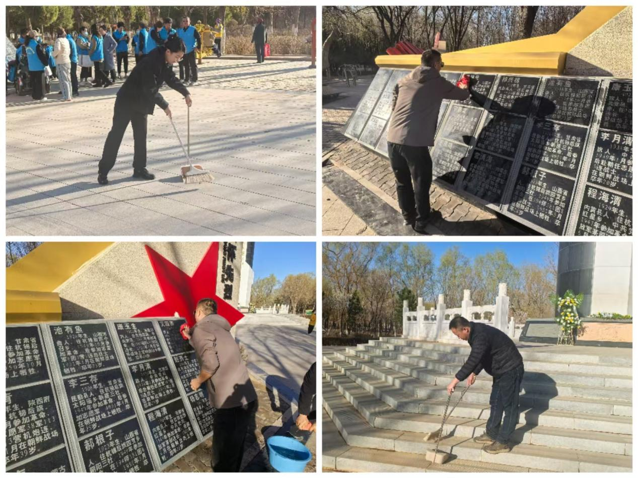 最后,旗退役军人事务局全体干部手持水桶、毛巾、扫帚等工具,认真擦拭人民英雄纪念碑,细致开展清扫行动,以实际行动守护烈士纪念设施、传承英烈精神。