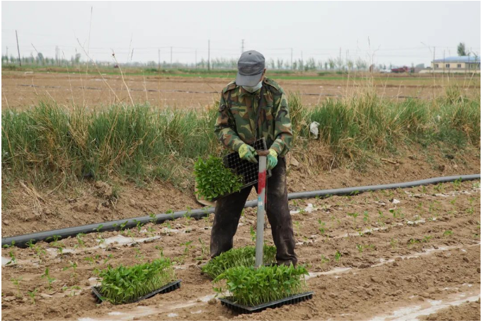 用黄河水滴灌,根据阶段性的用水、用药可以实时调节,化肥能省30%,肥料利用率提高30%,包括农药也能节省30%,可利用率提高30%。在省水方面,以前普通黄河水漫灌每亩大概要用100方左右,现在滴灌每亩地只需要10方到12方左右,这样就节省80%~90%的水量。