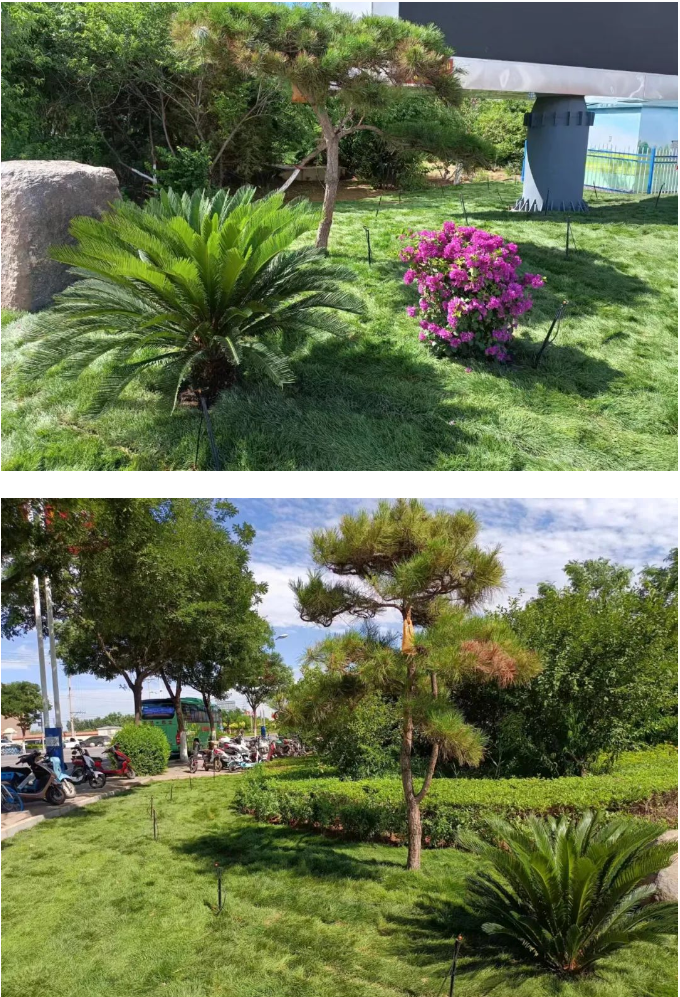 本次城区节点提标改造共计改造绿地面积3.7万平方米,铺设草坪1.9万平方米,更换绿化带侧石560米,种植四季玫瑰、鸡冠花等各类草花45万株及油松、龙铁、三角梅等各类造型、景观树木,打造出层次清晰、色彩明快、精巧细致的节点景观。