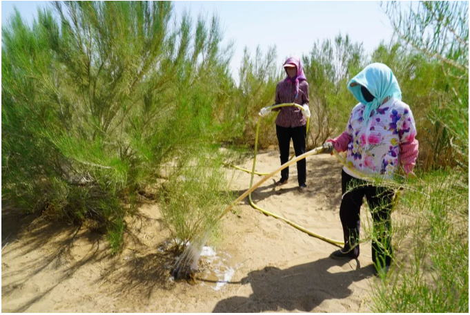 “我们建立了党组书记亲自抓、分管领导具体抓的工作机制,安排领导干部包联各镇村,落实技术指导、督查造林重点段落,将造林任务层层分解到每名党员干部身上,实行挂图作战、清单管理。大力弘扬‘治沙专家牛二旦敢把荒漠变绿洲’的奋斗精神,努力筑牢我国北方重要生态安全屏障。”杭锦后旗林业和草原局副局长段光硕说道。