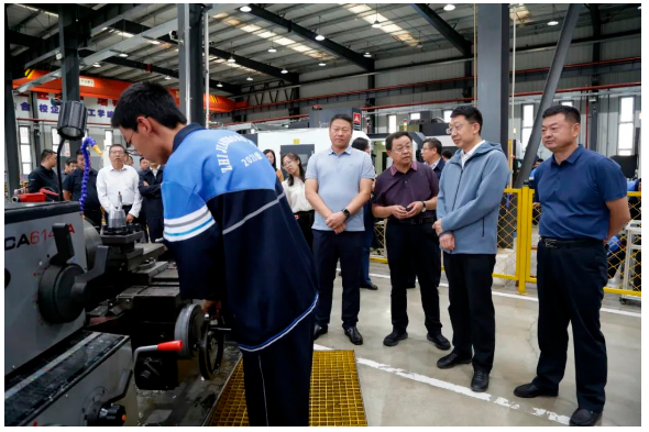 在杭锦后旗职业教育中心(巴彦淖尔应用技师学院),李冈一行先后到数控车间、酒类酿造车间等实训基地参观,与正在实操的学生和老师开展技术交流和学术探讨,并对杭锦后旗职教中心的教育教学管理模式及基地、招生、教学、科研、就业“五位一体”育人模式,校企合作、产教融合、工学结合运行机制给予了充分肯定。