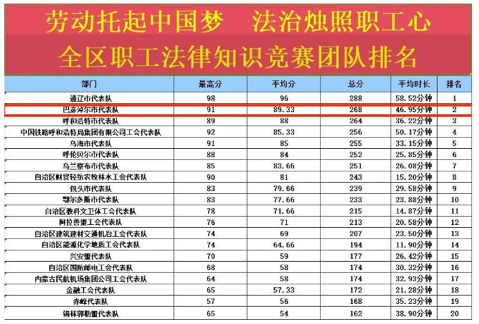 10月17日,2023年“劳动托起中国梦·法治烛照职工心”全区职工法律知识竞赛正式开赛。来自全区12个盟市的20支代表队60名队员参赛,经过紧张激烈的角逐,巴彦淖尔市代表队荣获本次全区职工法律知识竞赛第二名。