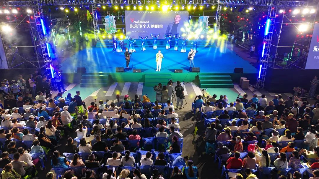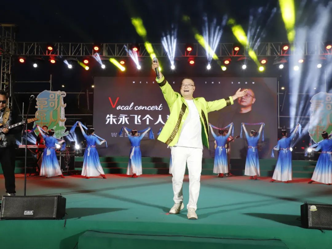 华灯初上,舞台上光影交错,音浪迭起,情歌王子朱永飞登台精彩献唱,用歌声点燃现场。《唱首情歌给草原》等歌曲让现场观众沉醉其中。随着《美丽的蒙古包》熟悉的旋律跳动,现场观众情不自禁,引吭高歌……炫动的灯光,激情的音乐,台下掌声、欢呼声绵绵不断,观众们挥舞着手中荧光棒,跟随歌声摆动着身体,现场气氛十分热烈。