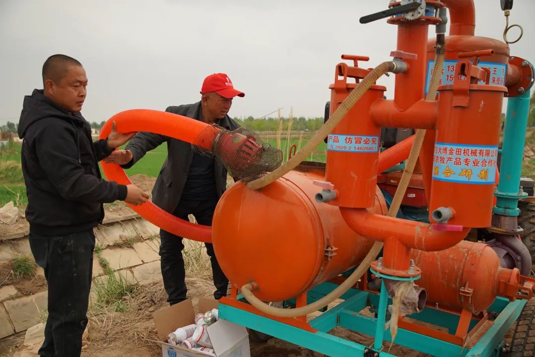 澄清池的作用是先把黄河水放进来,把水第一遍沉淀以后,再通过大功率的水泵到这个砂石过滤器里。过滤后再把肥加进去,从主管道里头把水和肥送到田间地头,比漫灌应该是减少用水45%—50%。