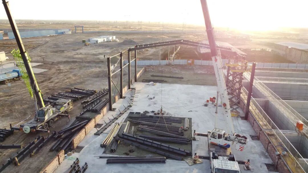 走进项目施工现场,吊车巨臂舒展、机械轰鸣作响,工人们头戴安全帽、身系安全绳,在各自岗位上有条不紊地紧张作业,一派热火朝天的建设景象。这个总投资9500万元的环保项目,不仅破解了油田开采固废处理的行业难题,更通过创新合作模式为乡村发展赋能,成为推动区域生态效益与经济效益双赢的重要载体。
