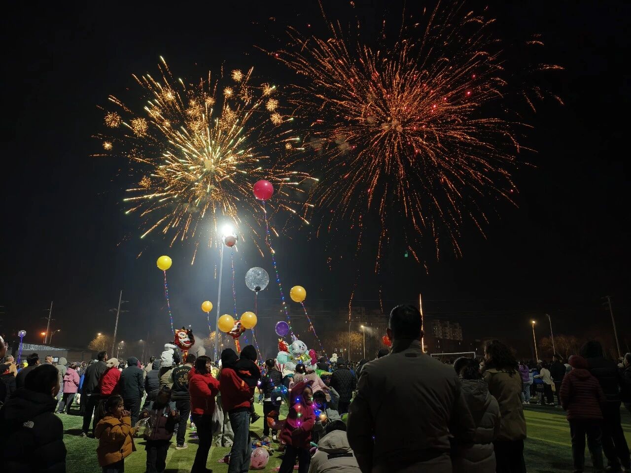 文艺演出余韵未尽,元宵焰火接续登场。一声声巨响划破夜空,五彩焰火次第升空、竞相绽放。刹那间,夜空如锦,万紫千红恰似繁花盛放;金辉漫洒,流光溢彩恍若麦浪翻涌。璀璨光影与人间灯火交相辉映,整条美食街瞬间化作欢乐的海洋。欢呼声、赞叹声在夜色中久久回荡,绚烂焰火承载着全旗人民对新年的美好祈愿,也映照出杭锦后旗蒸蒸日上、欣欣向荣的发展新貌。