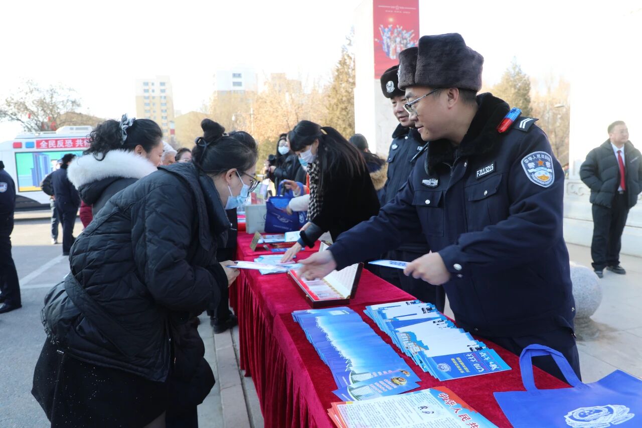 今年是《中华人民共和国反恐怖主义法》颁布十周年,也是“十五五”规划承上启下关键之年。为全面贯彻总体国家安全观,深入普及反恐法律法规,筑牢全民反恐人民防线,2025年12月26日,巴彦淖尔市公安局、杭锦后旗公安局联合隆重举办“全民反恐·共创平安”主题宣传活动。市公安局党委副书记、副局长刘利成,旗人大常委会副主任王智宽,政府副旗长、旗公安局党委书记、局长任凌渊,旗政协副主席苏雅拉,市公安局反恐怖和特巡警支队支队长赵育平,旗委政法委、旗公检法司负责同志,各成员单位代表,反恐志愿者及各界群众代表参加活动。