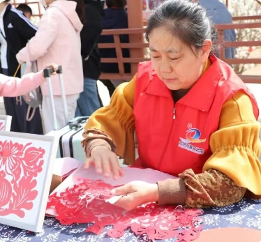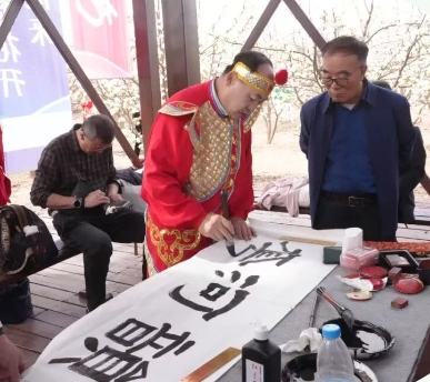 移步梨园分会场,更是满目诗意、氛围感拉满。威风锣鼓沿步道巡游助兴,非遗艺术团带来四大名著沉浸式实景演出,与游客趣味互动;身着旗袍与汉服的表演者身姿典雅、步履灵动,与如雪梨花相映生辉。许愿墙、书画摄影创作、梨园打卡点人气爆棚,大家用镜头与笔墨定格春日美好;现场非遗展示专区里,面塑、剪纸等传统技艺亮相,游客可亲手参与创作,在零距离互动中感悟河套传统文化的深厚底蕴。