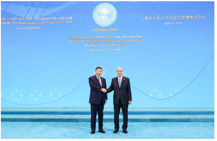新华社阿斯塔纳7月4日电(记者胡晓光 韩墨 杨依军)当地时间7月4日上午,国家主席习近平在阿斯塔纳独立宫出席上海合作组织成员国元首理事会第二十四次会议。