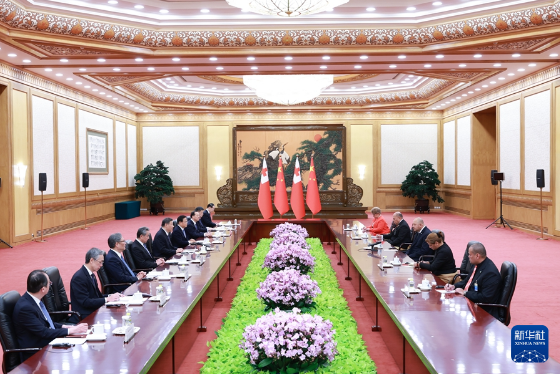新华社北京11月25日电(记者冯歆然)11月25日上午,国家主席习近平在北京人民大会堂会见来华进行国事访问的汤加国王图普六世。