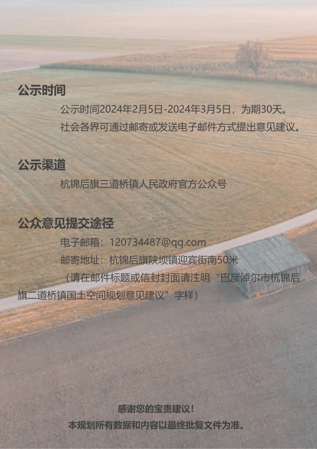 杭锦后旗三道桥国土空间规划公示