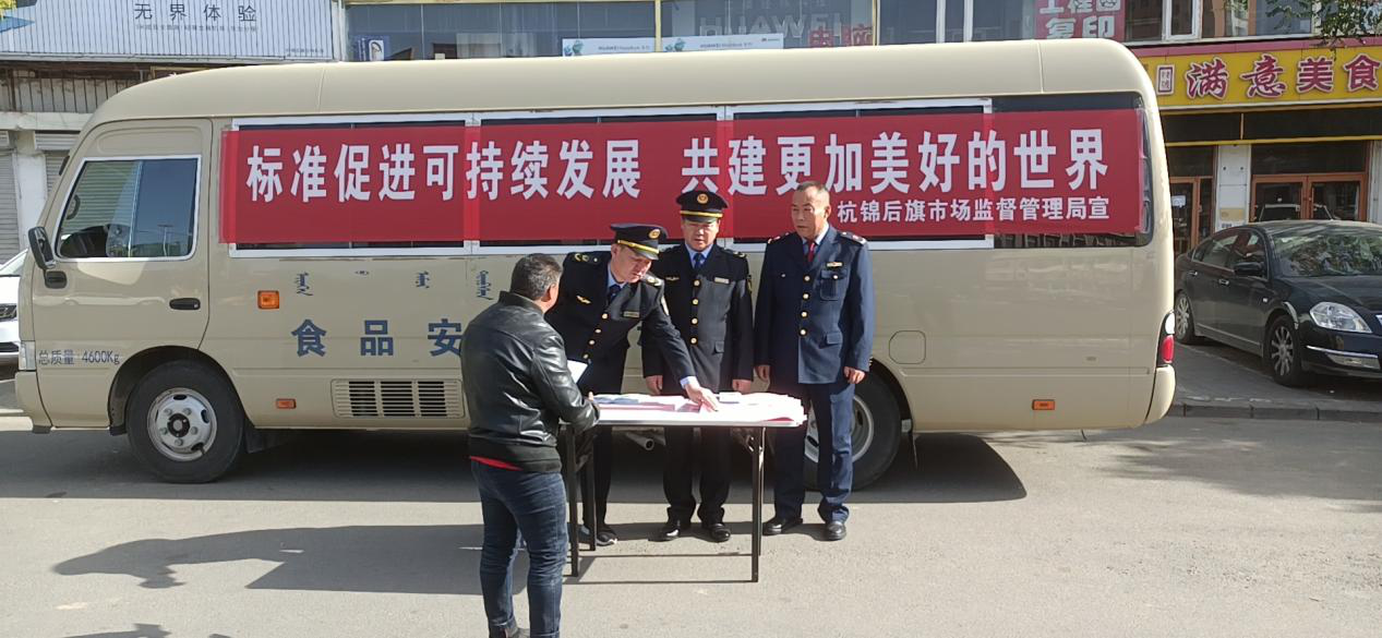 10月13日,杭锦后旗市场监管局在陕坝镇大转盘广场举办了主题为“标准促进可持续发展,共建更加美好的世界”的宣传活动。旗市场监管局党组成员、副局长张玉贵等参加。活动现场展示了一批标准化基础知识展板,并通过现场咨询讲解的形式,向群众科普插座、服装、饮用水等日常生活中的国家标准,发放宣标准化宣传材料,让老百姓更好地了解标准、认识标准、使用标准。