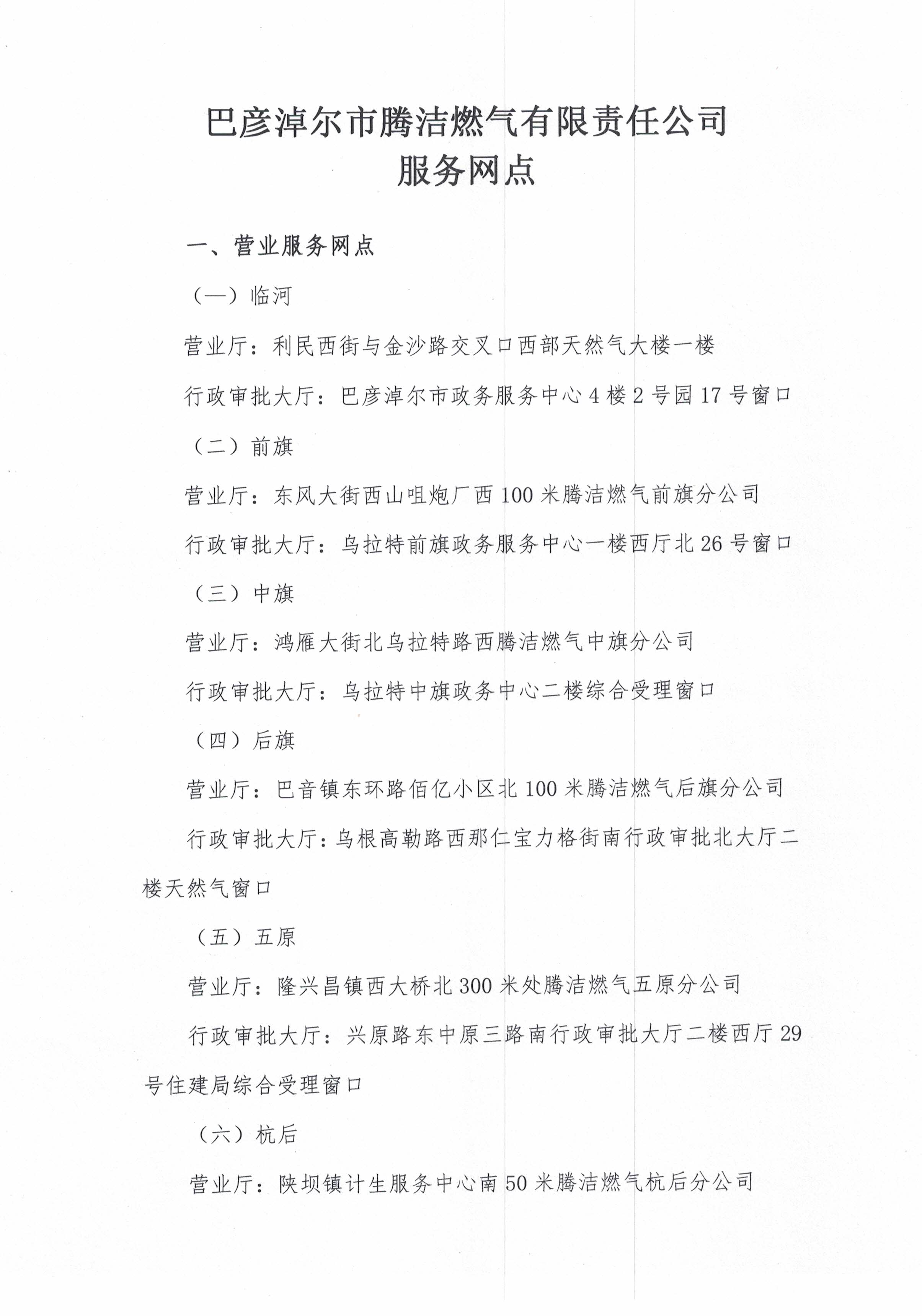 巴彦淖尔市腾洁燃气有限责任公司服务网点