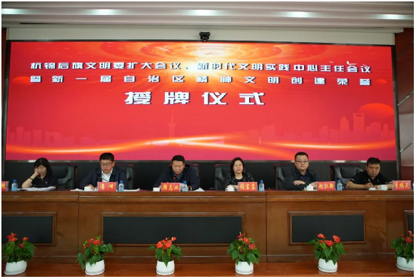 杭锦后旗举行文明委扩大会议、新时代文明实践中心主任会议暨新一届自治区精神文明创建荣誉授牌仪式