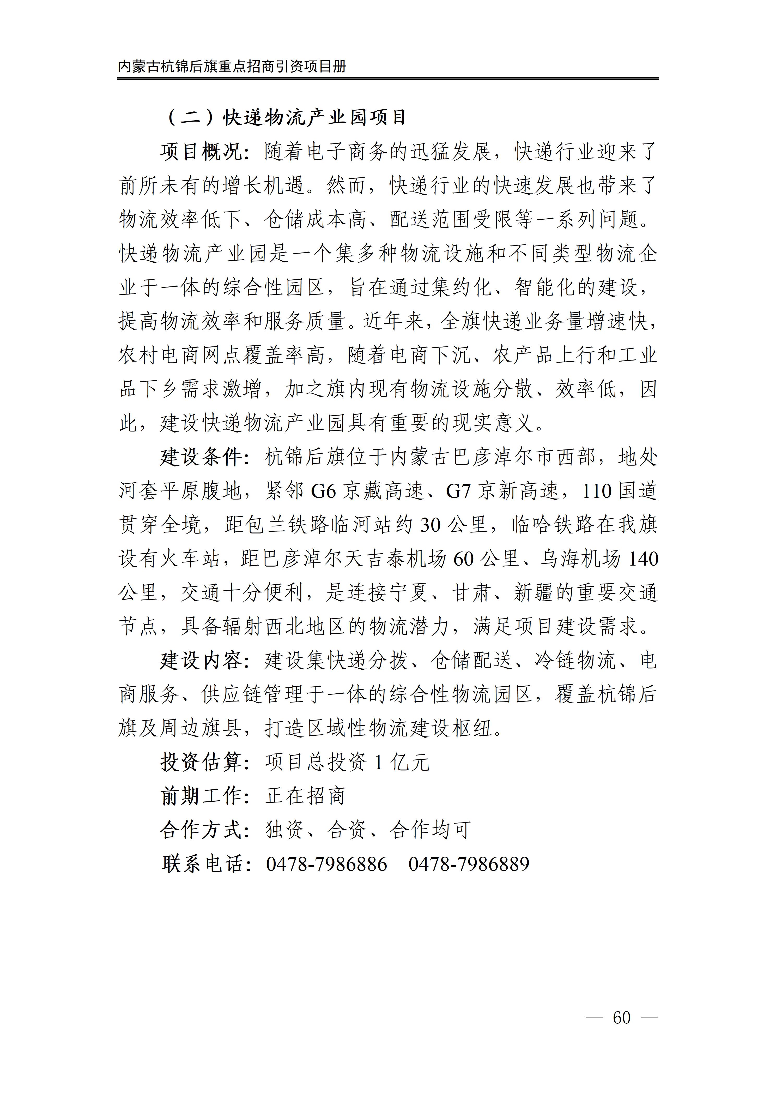 杭锦后旗2026年招商引资项目册