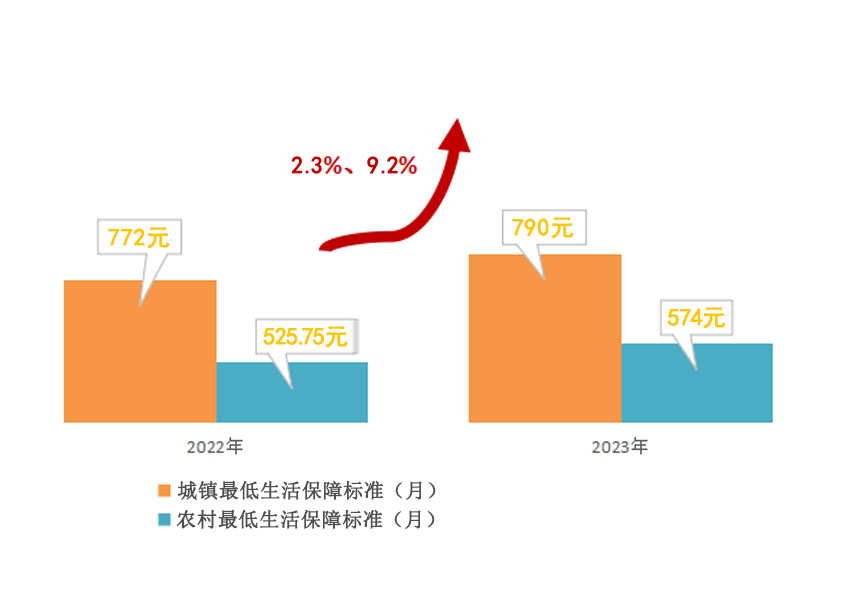为深入贯彻落实党的二十大精神,加快健全分层分类的社会救助体系,切实做好全区困难群众基本生活救助工作,持续巩固拓展脱贫攻坚成果,不断增强困难群众的获得感、幸福感、安全感,根据上级文件精神,2023年城乡低保救助标准又有所提高,城镇低保标准由772元/月提高至790元/月,农村低保标准由6309元/年提高至6888元/年(574元/月×12月)。杭锦后旗民政局严格按照文件要求执行,认真做好资金测算,积极筹措资金,严格审核标准,于2023年6月10日前按照新的标准将上半年低保救助资金补发完毕,7月起按照新标准发放,及时让每一位困难群众享受到党的温暖。