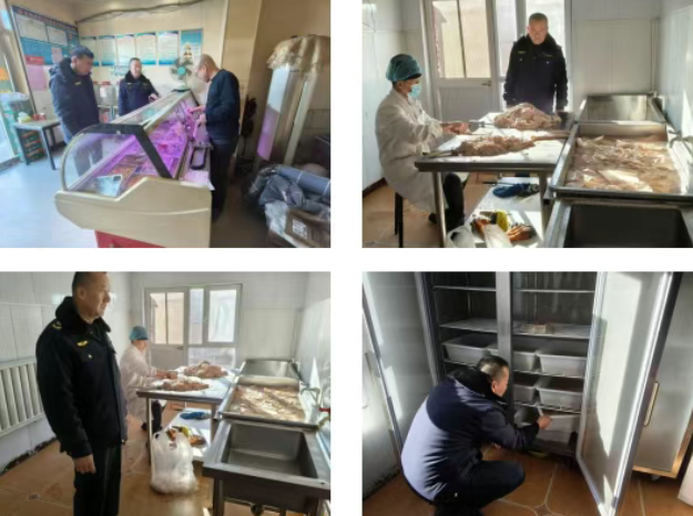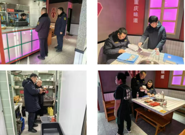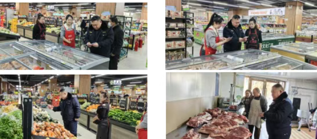 执法人员深入辖区各大超市,重点核查米面油、肉蛋奶、节令零食、酒类饮料等热销食品的生产日期、保质期、储存条件,以及进货查验、索证索票制度落实情况,严防过期、变质食品流入市场;针对各类肉铺,严格查验生肉检疫合格证明、进货来源,仔细核对肉品品质,杜绝未经检疫、不合格生肉销售,同时规范熟肉加工、储存流程,要求经营者做好生熟分区存放,严防交叉污染;对各类食堂,以及周边餐饮门店,重点检查后厨环境卫生、餐饮具消毒、食材处理规范,同时严查从业人员健康管理、上岗着装规范等情况。
