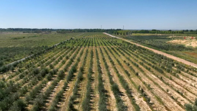 增收长效治。杭锦后旗实现“短期治理—长期管护—效益循环”的生态修复闭环,全面落实“建管并重”原则。通过将经济林承包给周边群众经营管理,特别是优先脱贫户、边缘户承包,让群众获得长期收益;成立专家组、党员志愿服务队,对群众进行培训和技术指导,培育新型职业农民;沙区新增土地由集体统一经营,收益按比例投入治沙成果管护。这种多维度协同的长效治理模式,既确保了生态修复成果的稳定持久,又通过产业融合创新了生态产品价值实现路径。