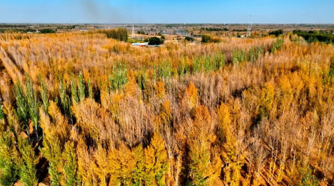 面对生态困境,杭锦后旗的治沙实践可追溯至20世纪50年代。一代又一代的杭后人投身于防沙治沙、造林护林事业中,通过70多年的不懈努力,种植出杨树、旱柳、沙枣等乡土耐旱树种,构建防风固沙林带,逐步探索出符合全旗自然条件的治沙路径。