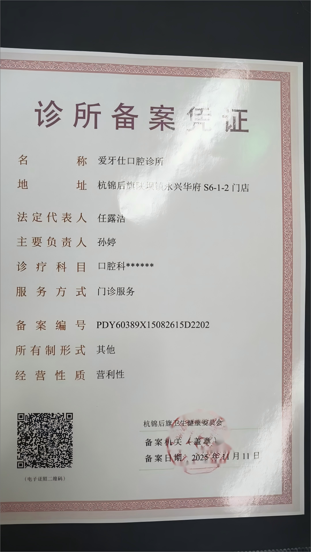 9.诊所的污水、污物、粪便处理方案,诊所周边环境情况说明等资料,向杭锦后旗卫生健康委员会医政股提出诊所备案申请,我委医政股收到备案材料后,对材料齐全且符合备案要求的予以备案,当场发放诊所备案凭证。