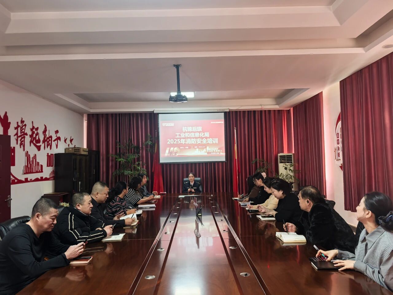 为深入贯彻习近平总书记关于安全生产的重要论述,落实“全民消防、生命至上——安全用火用电”消防宣传活动要求,切实强化工贸领域消防安全管理,2025年12月9日,杭锦后旗工信局特邀内蒙古自治区政安消防教育中心专家对全体领导干部开展工贸领域消防安全培训,切实提升机关全体干部职工消防安全意识与应急处置能力。