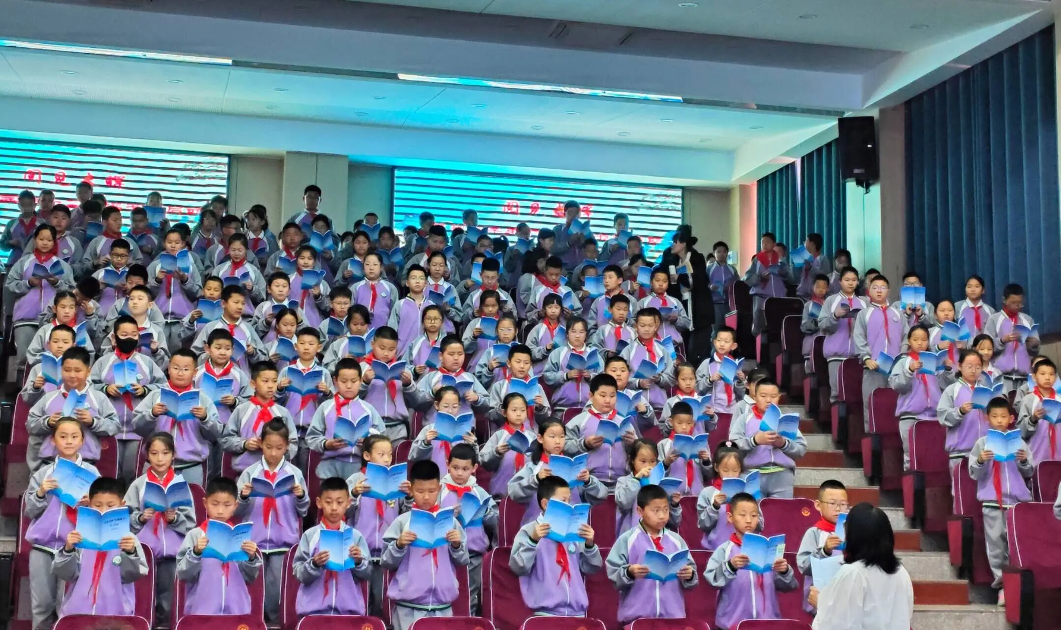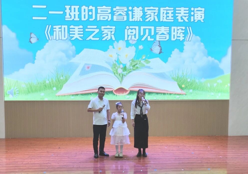 陕坝小学四年级学生代表集体诵读了《二十四节气歌》,展现了传统文化的独特魅力。二年级高睿谦家庭带来亲子诵读《和美之家 阅见春晖》,传递了家庭阅读的温馨力量。