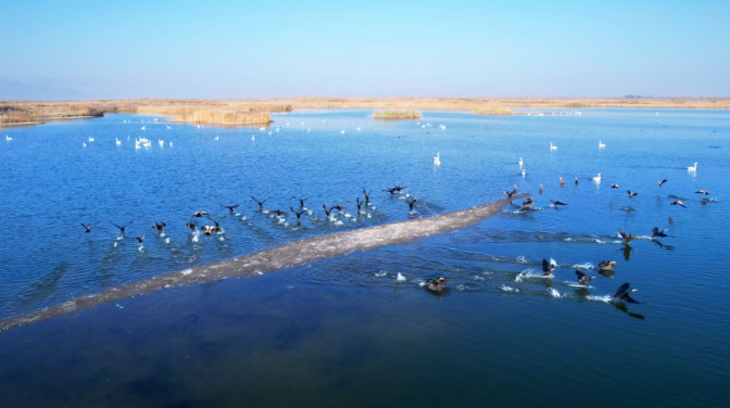 如今,屠申泽湿地生机盎然,候鸟种类和数量逐年递增。夕阳下,候鸟群与警灯交相辉映,定格北疆生态保护注脚,这不仅是一场跨越春秋的迁徙守护,更是公安力量护航人与自然和谐共生的生动实践。