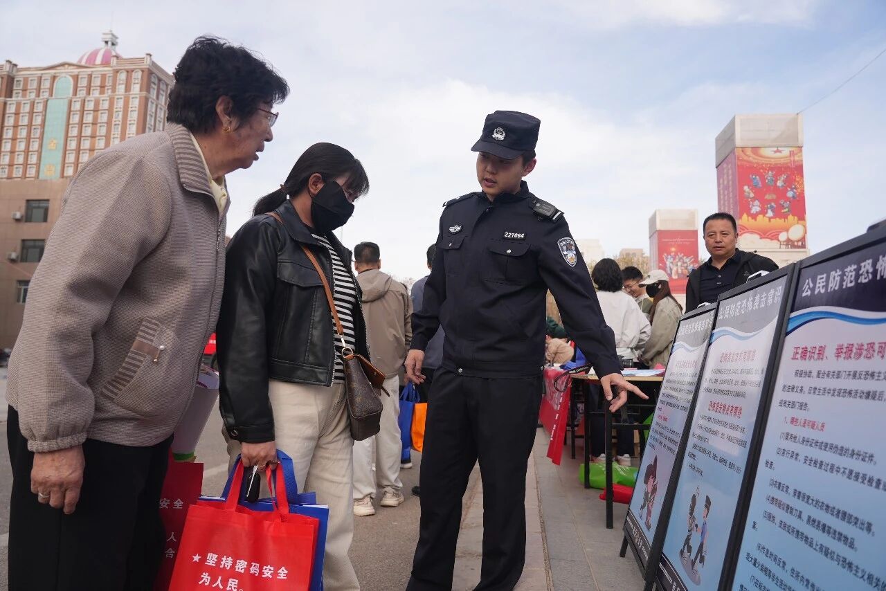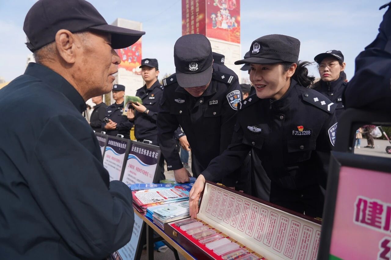 活动现场氛围热烈且秩序井然,广场上整齐摆放的宣传展板图文并茂、内容翔实。在便民咨询台前,民辅警们热情接待每一位群众,耐心解答各类安全相关疑问,逐一发放《中华人民共和国国家安全法》《中华人民共和国反间谍法》《中华人民共和国反恐怖主义法》《食品安全法》等宣传手册。同时,结合身边真实案例以案释法,用接地气的语言讲解网络泄密、电信网络诈骗、涉恐涉毒等与群众日常生活息息相关的安全风险,提醒群众警惕网络陷阱、守护自身财产安全,实现国家安全教育与日常安全防范深度融合,让宣传工作更接地气、更具实效。