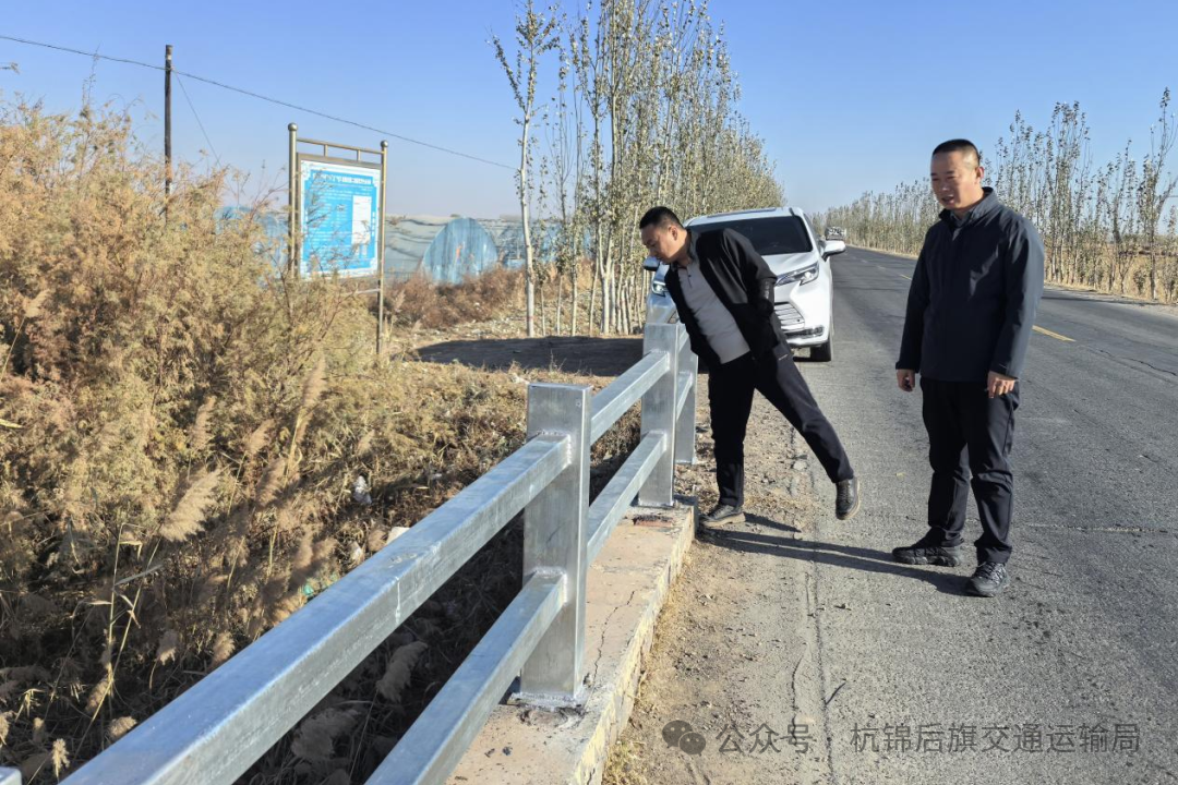 11月3日上午,杭锦后旗交通运输局副局长李星深入一线,对旗公路养护中心桥梁栏杆维修工作开展专项检查,实地督导安全隐患整治,压实养护责任,全力保障群众出行安全与路网畅通。杭锦后旗公路养护中心主任许杰陪同检查。