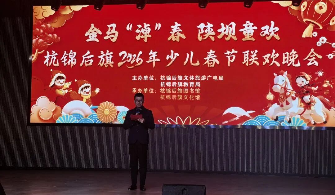 1月30日下午,“金马‘淖’春 陕坝童欢”杭锦后旗2026年少儿春节联欢晚会在旗职教中心惟新楼五楼温情启幕。本次晚会由杭锦后旗文体旅游广电局、教育局联合主办,旗文化馆、图书馆共同承办,为全旗人民奉献了一场充满童真与年味的文化盛宴。