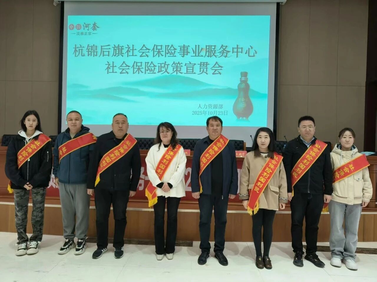 10月23日,杭锦后旗社会保险事业服务中心走进河套酒业集团开展社保政策宣贯会。社保中心副主任李敏、张耀,河套酒业集团副总经理李品出席,各部门、车间员工代表参加。