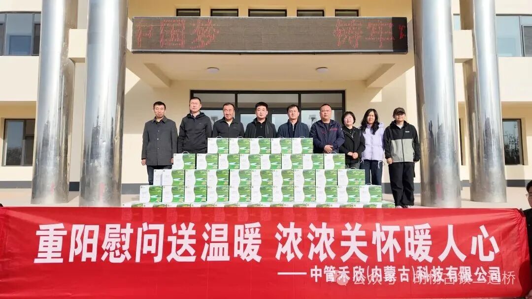 金秋送爽丹桂香,九九重阳胜春光。为弘扬中华民族尊老、敬老、爱老、助老的传统美德,扎实推进巩固拓展脱贫攻坚成果同乡村振兴有效衔接,切实兜牢民生保障底线,近日,二道桥镇携手中管禾欣科技有限公司开展重阳节走访慰问活动。