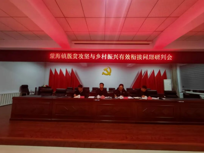10月11日,蒙海镇召开脱贫攻坚与乡村振兴有效衔接问题研判会,全面安排部署工作。会议由镇党委书记杨峥主持,镇全体领导干部、各村支部书记、驻村工作队参加会议,以及卫生院、农商行负责人参会。