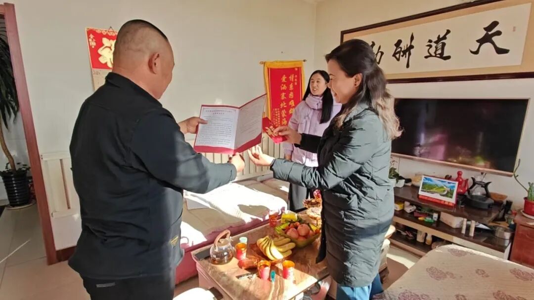 2月12日,旗新时代文明实践服务中心主任陈凯一行代表旗委宣传部来到蒙海镇永明村,走访慰问“身边好人”李德富,为这位长期扎根乡村的公益达人送上新春祝福和关怀。