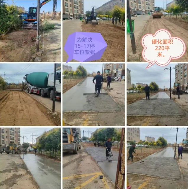 北环社区聚焦“停车难”这一民生痛点,将“增设小区停车位”纳入年度“微实事”项目。以党建引领基层治理为核心,社区构建“1+3+N”治理体系:由社区党总支牵头成立停车治理工作小组,整合居委会、业委会、物业公司“三驾马车”,联动社区民警、城管、共建单位等多方力量,每月召开联席会议,明确责任时限,形成攻坚合力。 经实地调研规划,锦绣花园金明物业公司利用国庆假期,组织专业人员、调配工程车辆,在小区合理区域推进车位改扩建工程。连续数日施工后,42个布局合理、标识清晰的新车位落地,既盘活了小区“金边银角”,又最大程度满足居民停车需求。