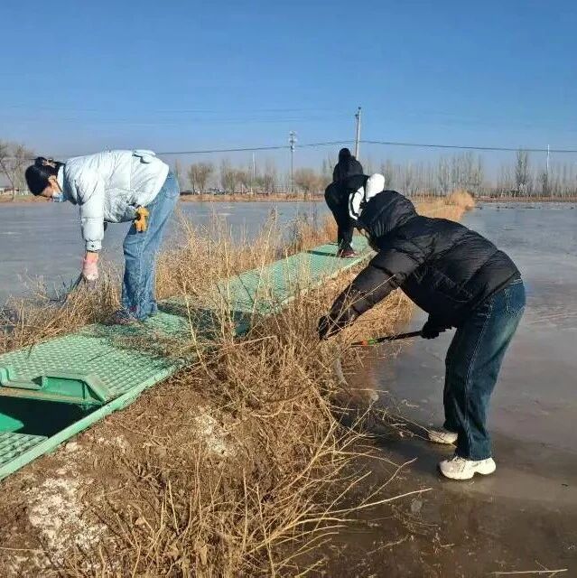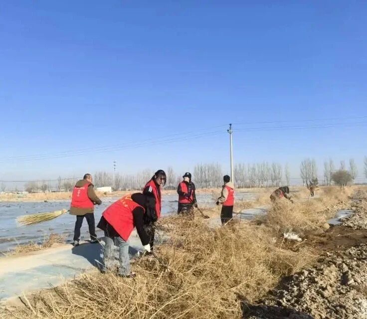 活动现场,党旗迎风招展,“志愿红” 成为最亮眼的色彩。党员干部们手持扫帚、铁铲、镰刀等工具,按照“分段负责、全面覆盖、不留死角”的原则,对道路和沟渠两侧的白色垃圾、枯枝败叶等进行地毯式清理。大家弯腰俯身,默契配合,有的清扫散落的杂物,有的捡拾绿化带内隐藏的垃圾,有的清运堆积的杂草和废弃杂物,不放过任何一处卫生盲区。凛冽的寒风中,大家干劲十足,不怕脏、不怕累,用双手一点点清除道路和渠道“顽疾”,用实干诠释党员担当。