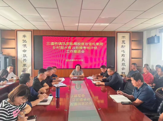 9月30日,三道桥镇召开巩固拓展脱贫攻坚成果同乡村振兴有效衔接考核评估工作推进会。政府副旗长、镇党委书记闫乐主持会议。镇全体领导干部、各村党支部书记参加会议。