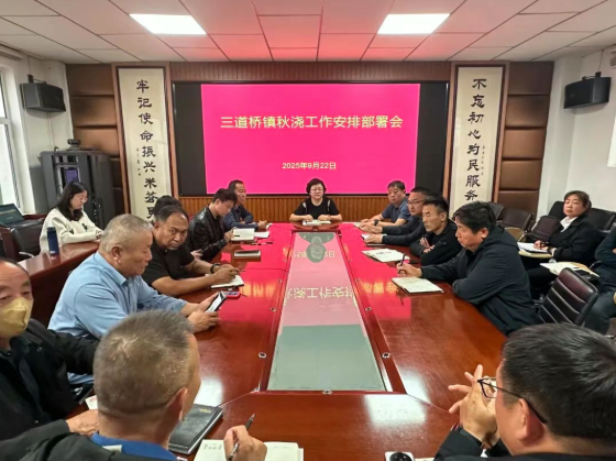 9月22日,三道桥镇召开2025年秋浇工作安排部署会,政府副旗长、镇党委书记闫乐,镇党委副书记、镇长刘波及各村包村领导、党支部书记参加会议。