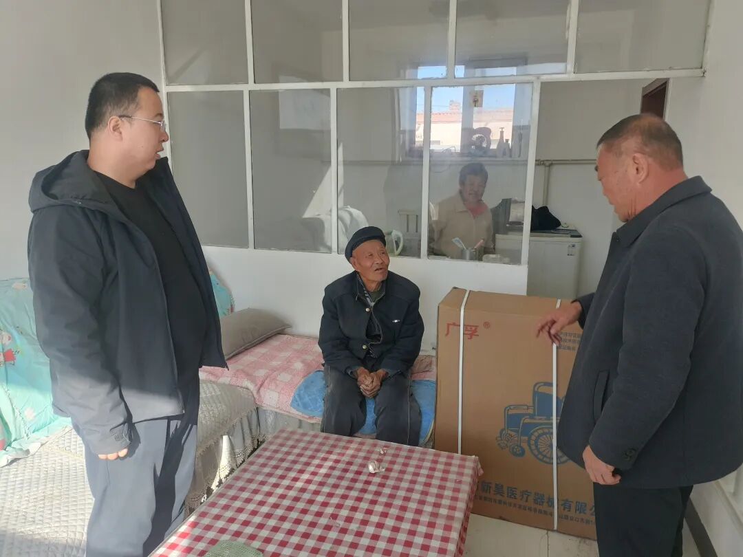 11月12日,沙海镇八一村驻村工作队联合村“两委”,为脱贫户李培正送去轮椅辅具,有效改善其出行条件。走访中,工作人员与李培正亲切交谈,鼓励他树立积极乐观的人生观,勇敢对抗病魔,满怀信心迎接美好生活,以精准服务切实破解群众“急难愁盼”问题。