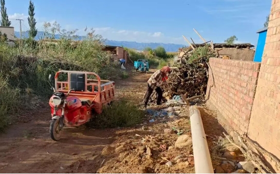 太荣村开展人居环境整治工作,村民清理村庄周边垃圾,营造整洁舒适的乡村环境。