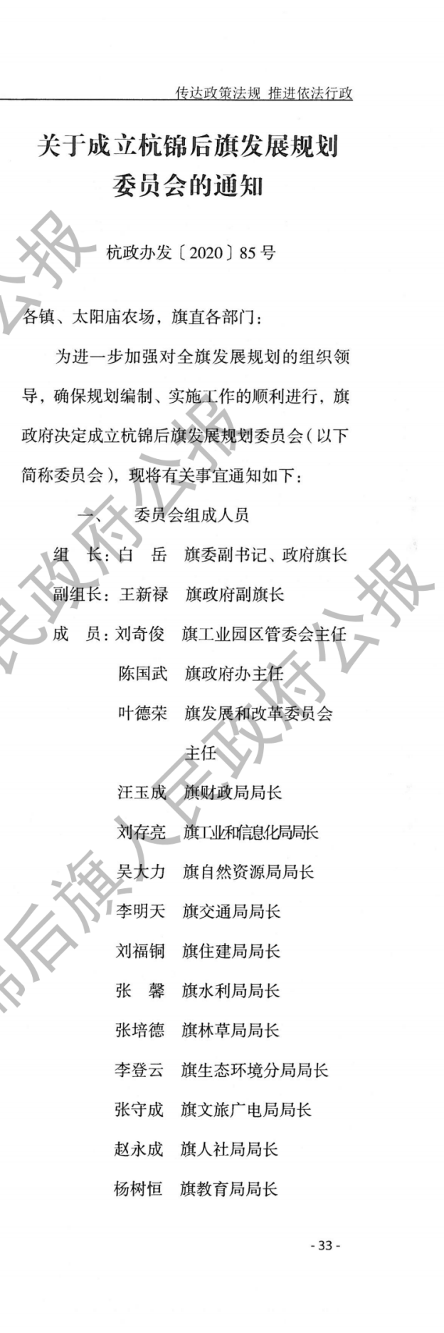 关于成立杭锦后旗发展规划委员会的通知