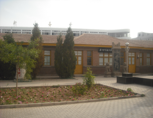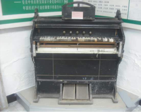 第二展室:这个展室反映学校成熟时期的历史状况,时间从1952年至1988年。墙角的几个展柜,从右向左,第一展柜里有一口铜钟,原来是清朝末年陕坝天主教堂的钟楼用品,后来随着教会学校普爱中学并入杭锦后旗中学,它就被挂在了正校门内两棵大柳树上。多少奋斗中学的学子就是听着钟声进入课堂,又伴着悦耳的钟声成长,从奋中毕业,走向五湖四海,成为祖国建设的栋梁。墙角展柜里陈列着一张委任状,那是1952年绥远省政府主席、副主席给奋斗中学副校长徐秀泉签发的,由此可见,当时奋斗中学的社会地位和声望很高。左侧展柜里有三个精致的奖杯,是我校在2005年、2007年,2009年三次荣获全国“百强中学”的奖杯,它雄辩地说明我校近年来的发展是突飞猛进的,为世人所瞩目的。展柜里还有几盏油灯,虽然很破旧,可是,就在这昏暗的灯下,莘莘学子如饥似渴地学习的影子仿佛就在眼前。学校转入国家公办以后第一任校长是王非,副校长是徐秀泉,他们为奋斗中学的发展作出了不可磨灭的贡献。接下来大家看到的是“文革”时期学校的历史,那时的教育受到极“左”思潮的影响,动辄缩短学习时间,或者停课闹革命,学生没有安静的课堂,但是也学到了不少实践经验。这些展板上的图片和资料反映得比较详细。这个展室中间展柜里展出了不少当时学校领导、教师、学生活动的档案,这些档案保存得比较完好。东墙角陈列着三件展品,分别是私立奋斗中学时期教师用过的椅子、六旋琴和管风琴,其中这台管风琴曾是陕坝天主教堂神父做弥撒时唱诗班用的,到现在虽然有百年历史,但音律还比较准。
