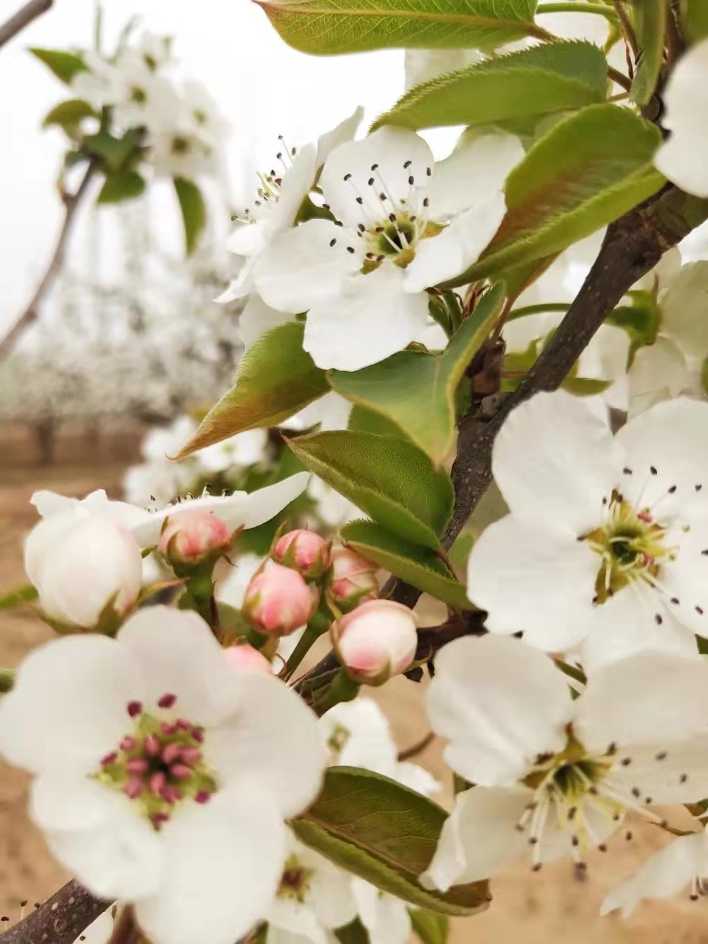“春天赏花,秋天品果”。挂满枝头的梨花不仅给人们带来了春的气息,也预示着秋季果实的丰收。